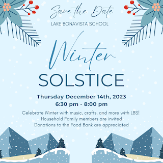 In the spirit of building community and gratitude we are hosting a food drive at LBS. If you are able, please send in any non-perishable food items for donation to the Calgary Food Bank. We invite families to bring their donations to the Winter Solstice event next Thursday evening. LBS will be collecting donations until Friday December 15.