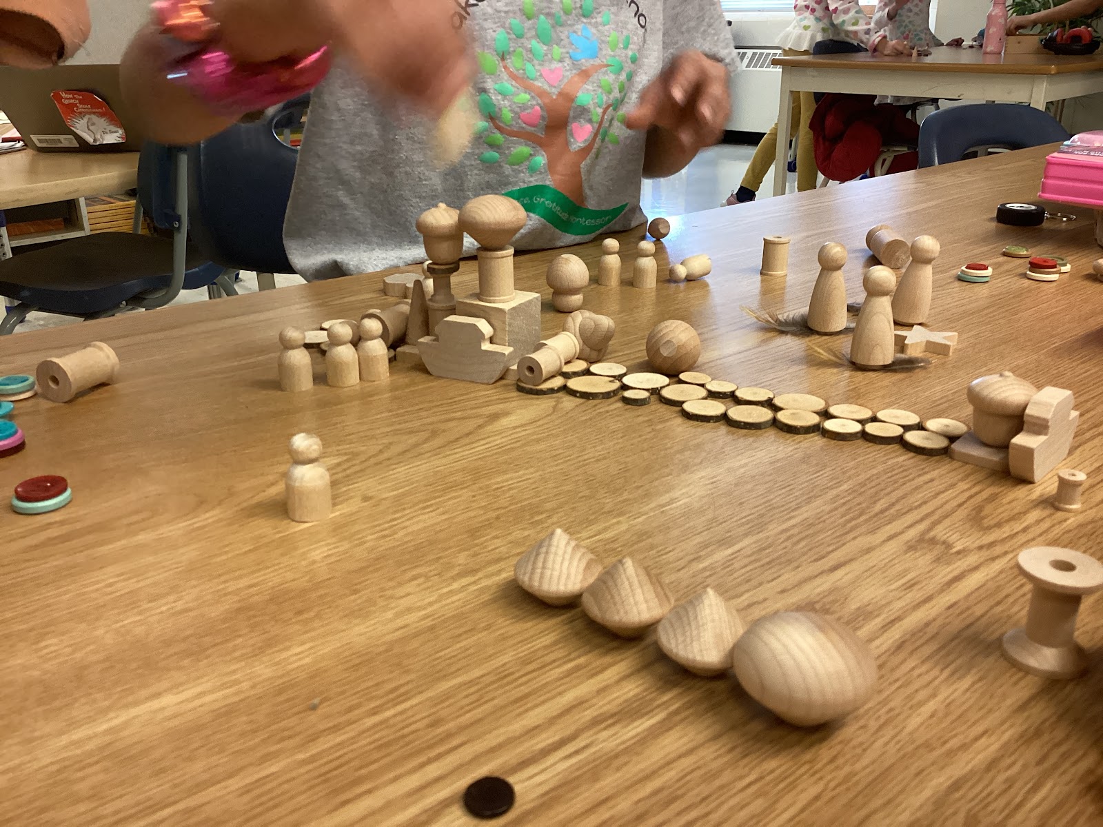 In the afternoon, we learned more about the history of Alberta. We watched a short series called "Alberta: The Stories that Made Us". The students used loose parts to construct representations of an event or two of their choice from Alberta's history. I was really impressed by the teamwork and cooperation - there wasn't a single disagreement and everyone was actively involved. See if you can figure out what's happening in each scene!
